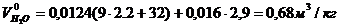 . Теоретический объём водяных паров: