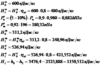 Процесс расширения пара в турбине с величинами энтальпий и их перепадов, приведен на рис. 2