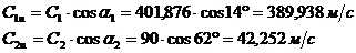 из входного треугольника скоростей (рис. 3)