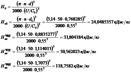 принятому оптимальному отношению скоростей для нерегулируемых ступеней