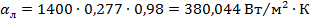 Коэффициент теплоотдачи излучением для не запыленного потока, вычисляют по формуле: