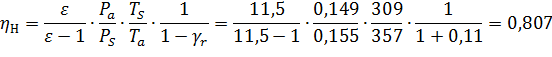 Давление в конце процесса сжатия: