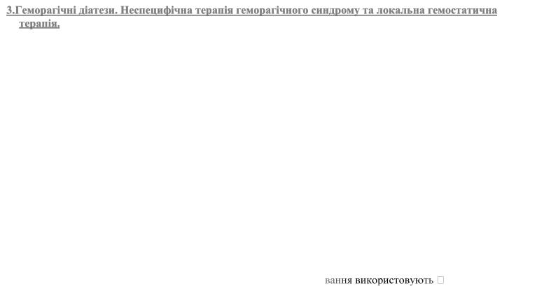 3.Геморагічні діатези. Неспецифічна терапія геморагічного синдрому та локальна гемостатична терапія.