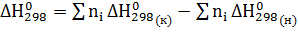 следует, что тепловой эффект реакции равен разности между стандартными