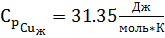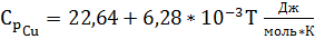 учитывая уравнение температурной зависимости удельной теплоемкости меди при