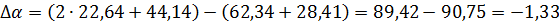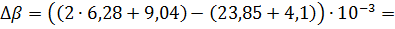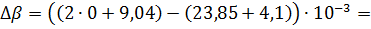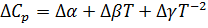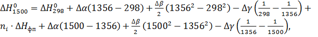 интервале температур 298-1356 К, получим разность коэффициентов α, β, γ: