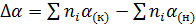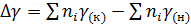 - разность коэффициентов α, β, γ продуктов реакции и