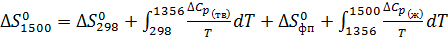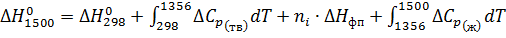 зависимости теплоемкости от температуры, в в интервале температур 1356-1500 К,