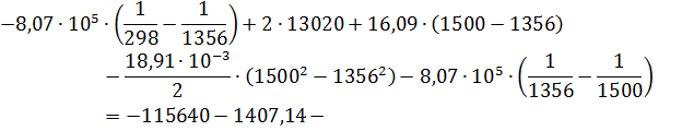 для химической реакции в интервале температур от 298 до 1500 К: