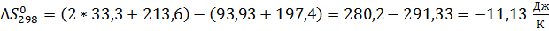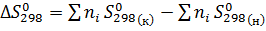 - разность стандартных абсолютных энтропий продуктов реакции и
