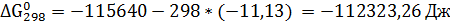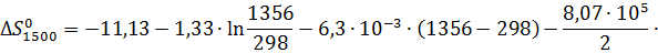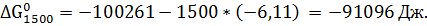 Изменение энергии Гиббса при 1500К: