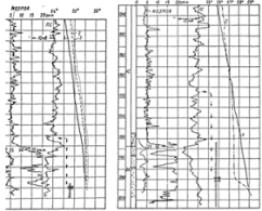 Совпадение мест притока воды, установленных резистивиметром и термометром при отсутствии характерных температурных аномалий, указывает на отсутствие затрубного движения жидкости. На температурной кривой в скважине в ряде случаев отмечаются аномалийные участки (максимумы или минимумы), связанные с различной теплопроводностью горных пород. Поэтому при истолковании температурной кривой необходимо одновременно сопоставить ее с геологокаротажным разрезом.
