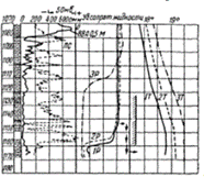 Такие случаи отмечаются прямолинейными участками на температурной кривой при проведении замера в скважине с установившимся тепловым режимом или в скважине, подготовленной к замеру промывкой.