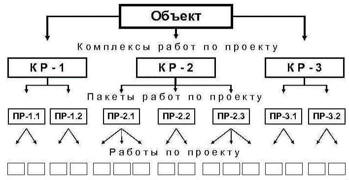 - графическое изображение иерархической структуры всех работ проекта; |
