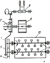 Рис. 6. Кинематическая схема тестомесильной машины И8-ХТА-12/1: