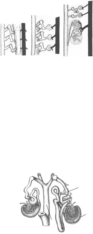 3)возникновение капиллярных клубочков,