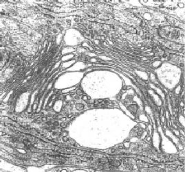 Укажите вид органеллы, представленный на электронной микрофотографии. А) гранулярная эндоплазматическая сеть; Б) агранулярная эндоплазматическая сеть; В) комплекс Гольджи; Г) митохондрии; Д) лизосомы.