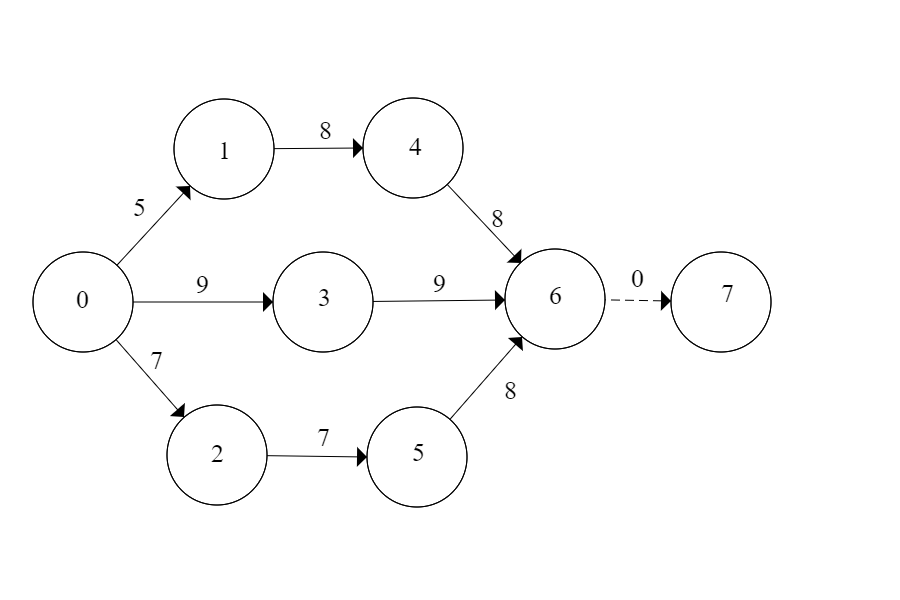 Критический путь: 0 – 2 – 5 – 6 – 7