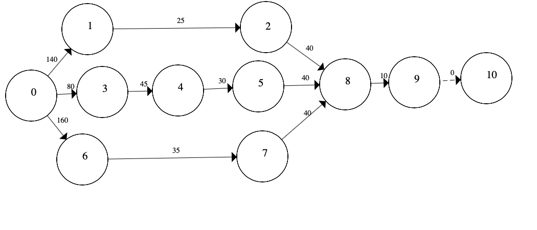 Критический путь: 0-6-7-8-9-10 = 160+35+40+10+0 = 245