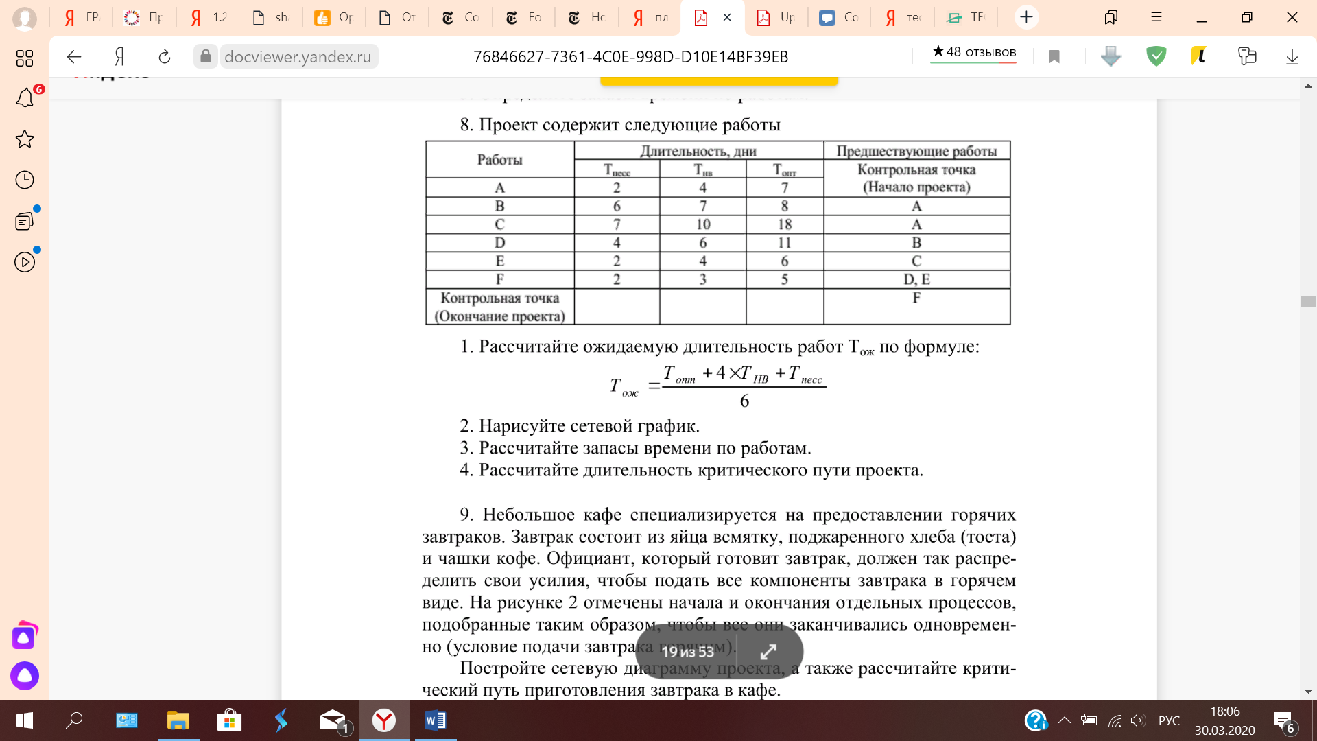 Рассчитайте ожидаемую длительность работ Тож используя данные: