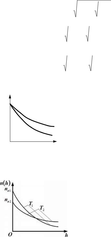 hдля одного газа (μ2 = μ1) при разной температуре (Т2 > Т1).