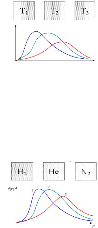 ство газа, причем Т1 > Т2 > Т3. Распределение скоростей моле-