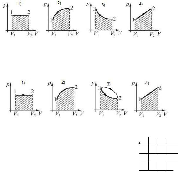 9.2. Работа, совершаемая идеальным газом при его изобарном расширении, численно равна заштрихованной площади, показанной на рисунке...