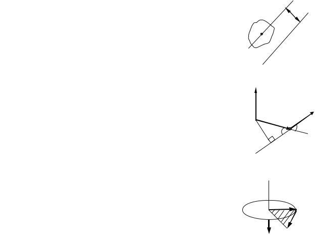 между линией действия силы и осью вращения |
