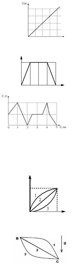 4.5. На рисунке изображены зависимости ускорений трех прямолинейно движущихся материальных точек одинаковой массы от координаты х. Для работ сил, действующих на точки, справедливо следующее соотношение:
