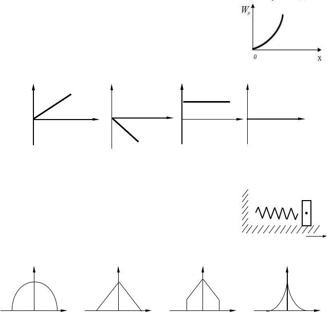 4.10. В потенциальном поле сила F пропорциональна градиенту потенциальной энергии Wp. Если график зависимости потенциальной энергии Wp от координаты х имеет вид, представленный на рисунке, то зависимость проекции силы Fx на ось х будет…