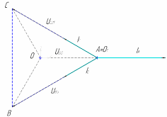 6. Обрыв линейного провода фазы А при одинаковой нагрузке фаз приемника