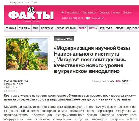В газеті «Факти» від 18 травня 2013 року на одній сторінці розміщено відразу два матеріали з ознаками замовності - про українських виробників вина «Магарач» та «Винодельческое хозяйство князя Трубецкого».