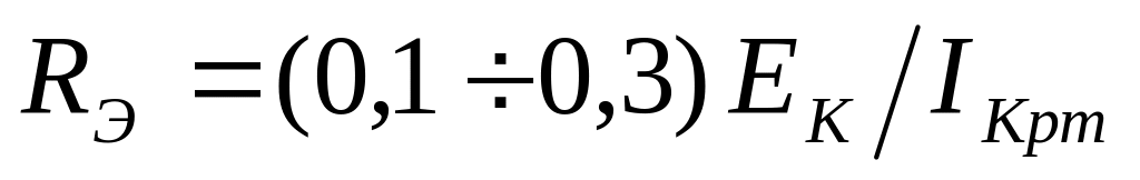 Лучший результат температурной стабилизации дает эмиттерная стабилизация рабочей точки, достигаемая за счет включения в цепь эмиттера резистора RЭ (рис. 3.3), который формирует отрицательную обратную связь по постоянному току. Сопротивление резистора RЭ рассчитывается по формуле