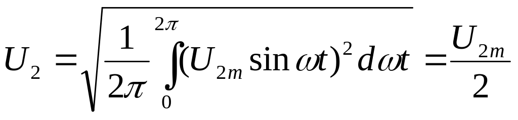 Действующее значение U2 однополупериодного напряжения на сопротивлении нагрузки равно его среднеквадратическому значению
