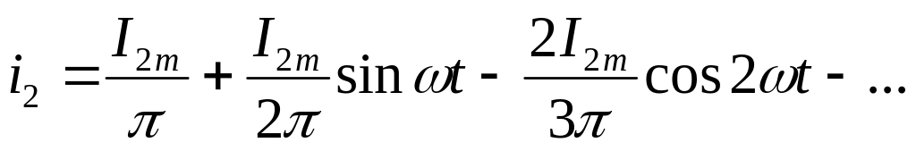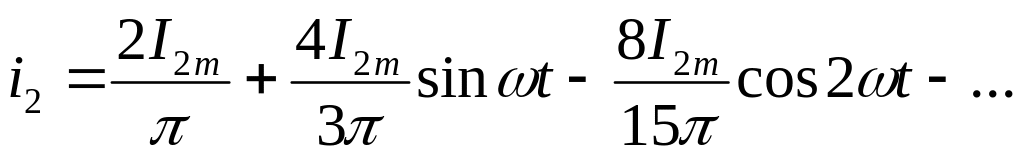 Коэффициент пульсаций КП равен отношению амплитуды первой гармоники выпрямленного тока к его постоянной составляющей. Поскольку разложение в ряд Фурье двухполупериодного выпрямленного тока имеет вид