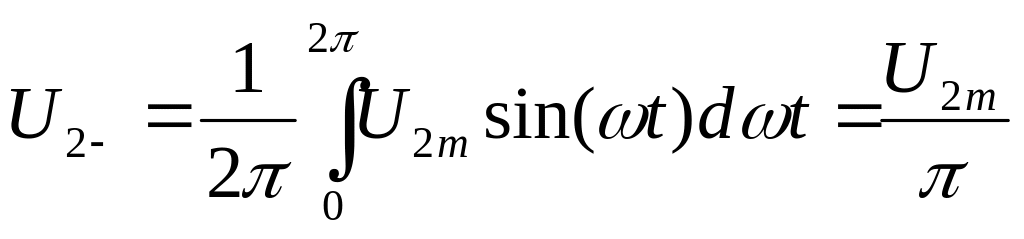 Постоянная составляющая U2- однополупериодного напряжения на сопротивлении нагрузки равна среднему значению напряжения u2(t) за период:
