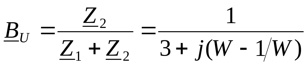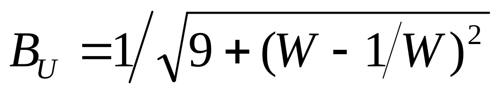 Кривые частотных характеристик фильтра Вина представлены на рис.6.2б. Максимальное значение модуля коэффициента передачи ВU, равное 1/3, и нулевое значение аргумента B достигается при W=1, на частоте