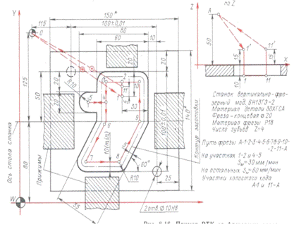 Построение фрезерной операции на станке с ЧПУ, так же как и других операций, прежде всего связано с разработкой РТК. Общий порядок построения РТК, рассмотренный выше, сохраняется и здесь.