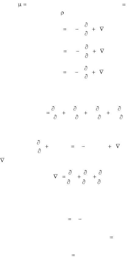 Уравнение (1.32), называемое уравнением Навье–Стокса, по сути своей выражает второй закон Ньютона и устанавливает связь между массовыми и поверхностными силами, отнесѐнными к единице массы жидкости. Слагаемые в нем имеют размерность ускорения