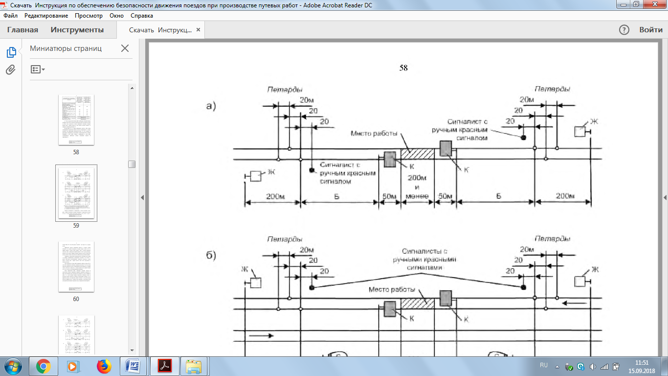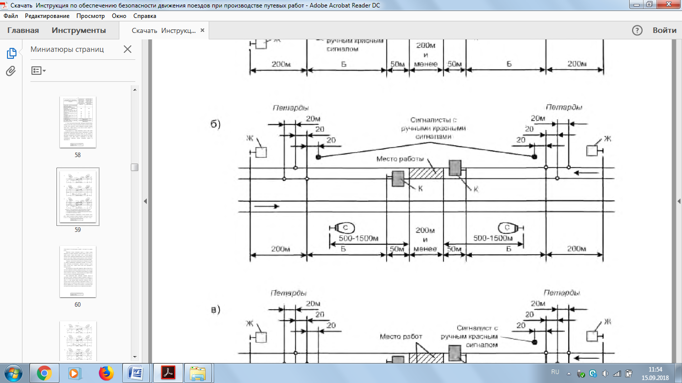 Схемы ограждения места производства работ на пути переносными сигнальными знаками «Свисток»