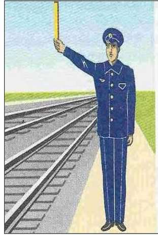 При свободности пути поезд встречается днем – желтым свернутым флагом, ночью – ручным фонарем с прозрачно-белым огнем.