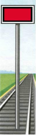Переносной сигнал «Остановка» - щит прямоугольной формы красного цвета с обеих сторон (для однопутного участка), с одной стороны красного с другой белого цвета (для двухпутных и многопутных участков).