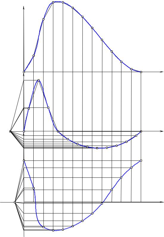 порядка 20…40 мм, и проводим из него лучи 1, 2, 3, 4 и т. д., параллельные секущим Oa, ab, bc, cd и т. д., до пересечения с осью ординат.