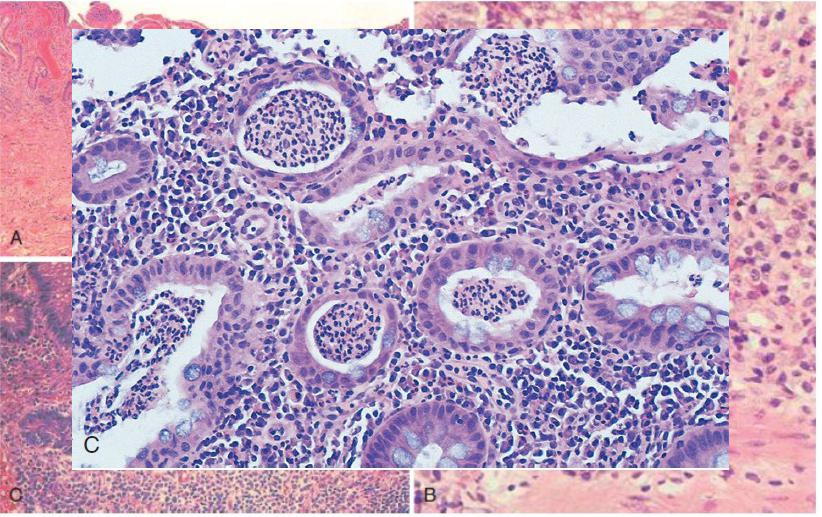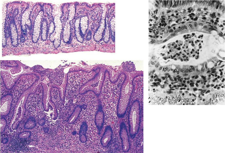 •Наличие крипт-абсцессов и базальных лимфоидных скоплений