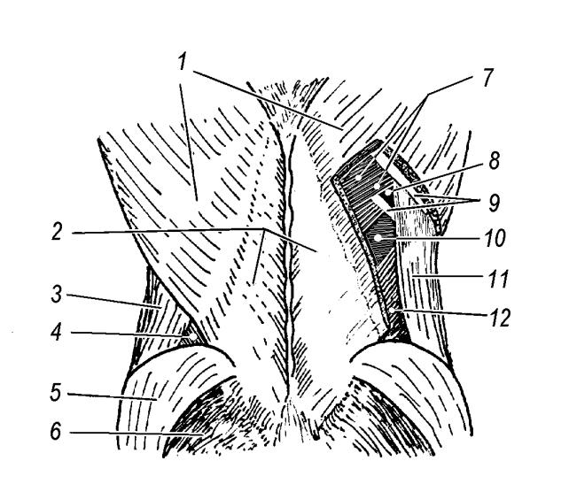 10– апоневроз поперечной мышцы живота – дно ромба Лесгафта-Гринфельта,