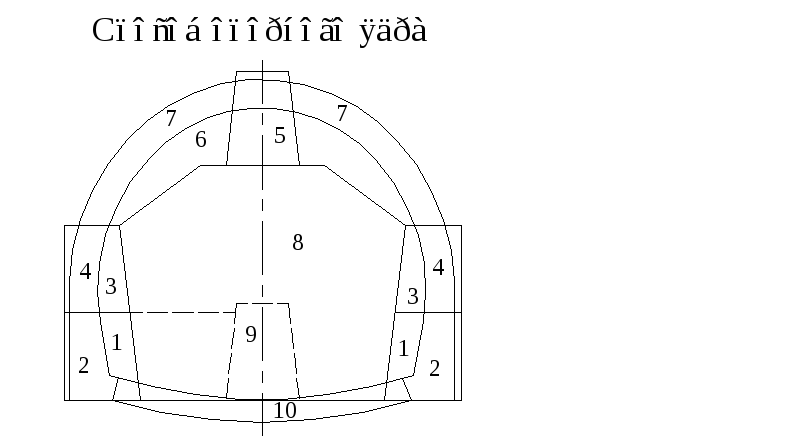 Рис.4. Схема сооружения тоннеля уступным способом.