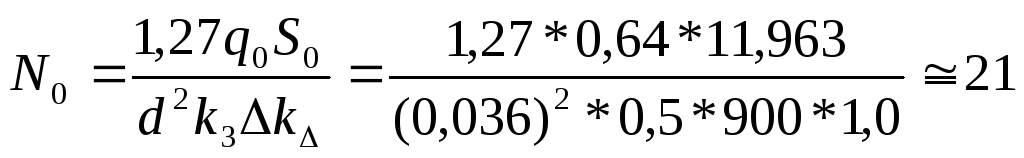 Далее вычислим количество шпуров на забой по формуле: