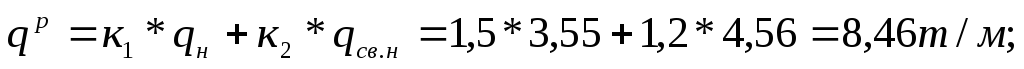 Определим расчётные нагрузки посредством умножения нормативных на коэффициенты перегрузки: