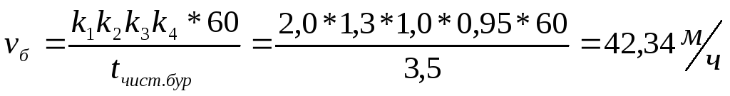 Чистая скорость бурения шпура определяется по формуле: