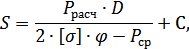 С1 - прибавка на коррозию (при скорости коррозии 0,1 мм/год и расчетном сроке службы аппарата 12 лет С1 = 1,2 мм);